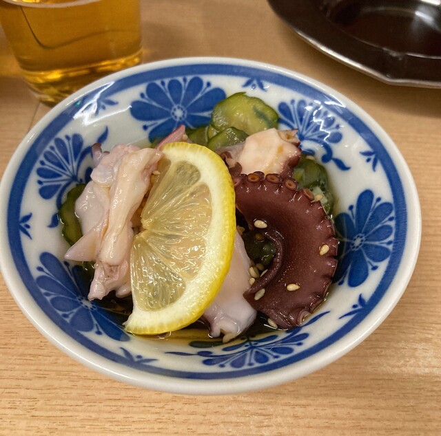 大瓶とどてやきとタコ酢。やっぱ旨いのお。