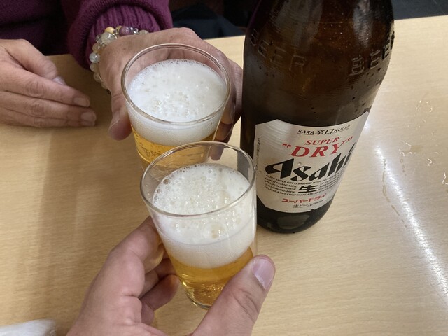 390円の麦酒大瓶で乾杯!どて焼、すじ焼き、カステラ