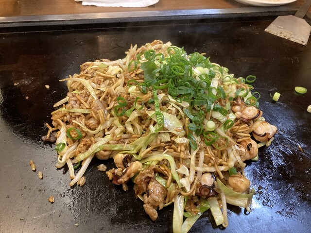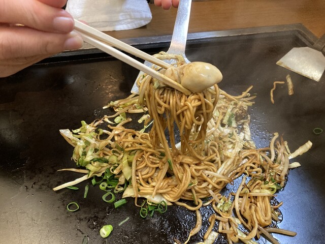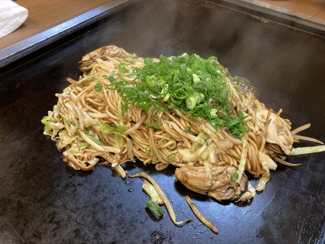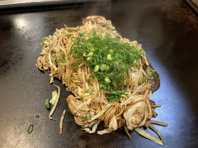 味もええですよお!まず牡蠣の焼きそば、次にお好みの牛すじ焼き、