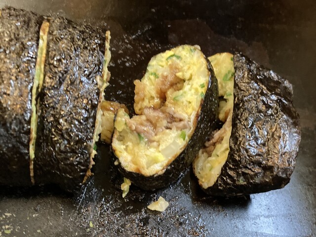 特製すじ肉焼きのお好み焼きの玉子のり巻き