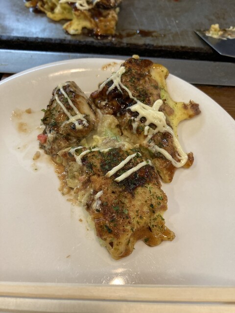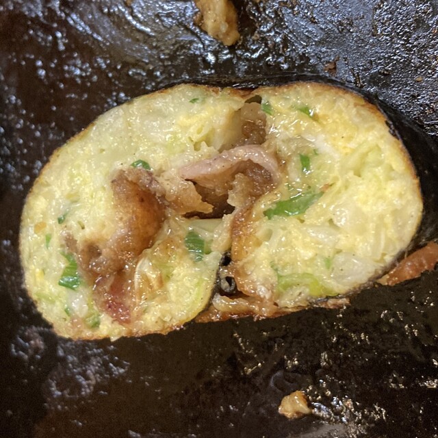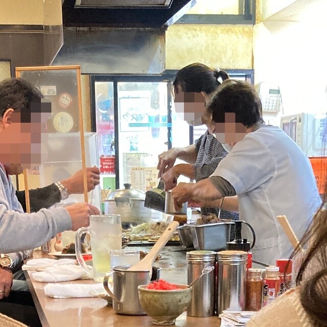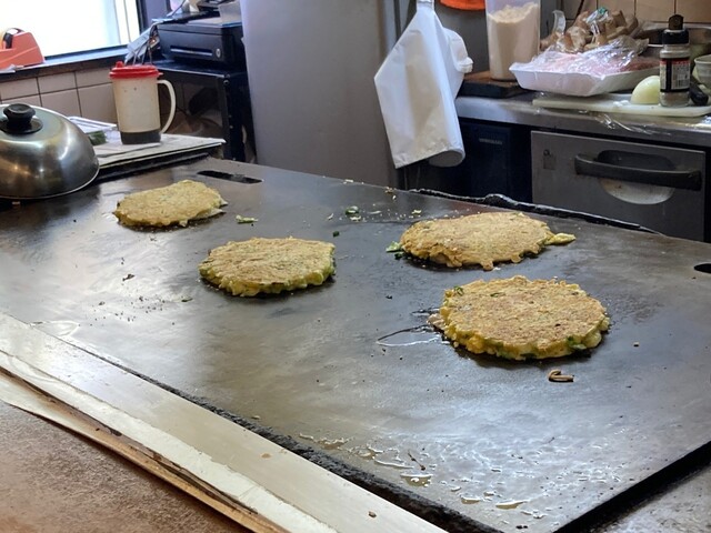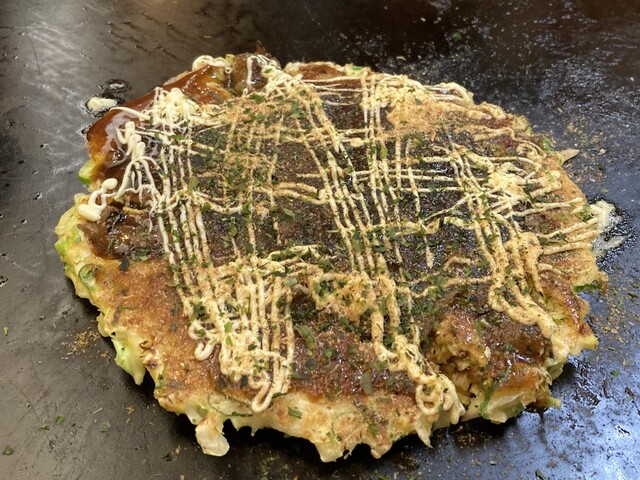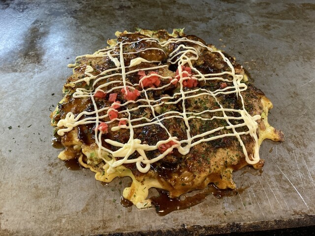 目の前でおばあちゃまが説明しながらお好み焼きを焼き上げ、