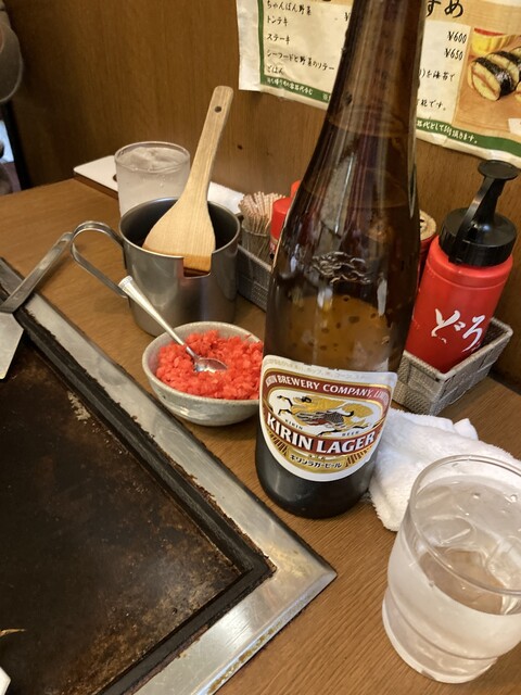 最初から冬季限定のかき焼き(お好み焼き)と麦酒を。