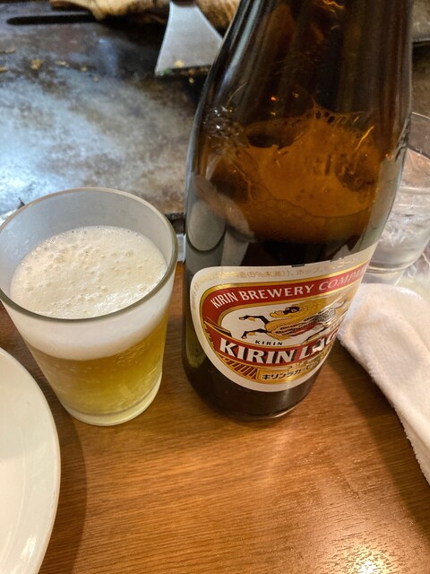 すじ焼きの卵入りのり巻き(500円+50円+50円)と生ビール380円。