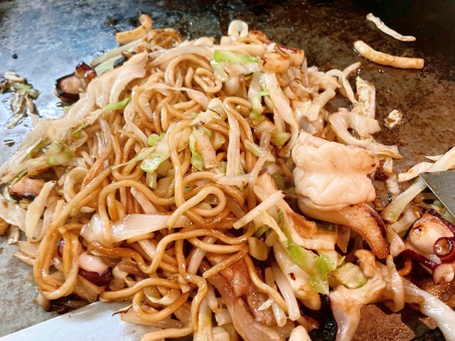 そして神戸らしくたこでそばめし。カウンターで焼き上げて