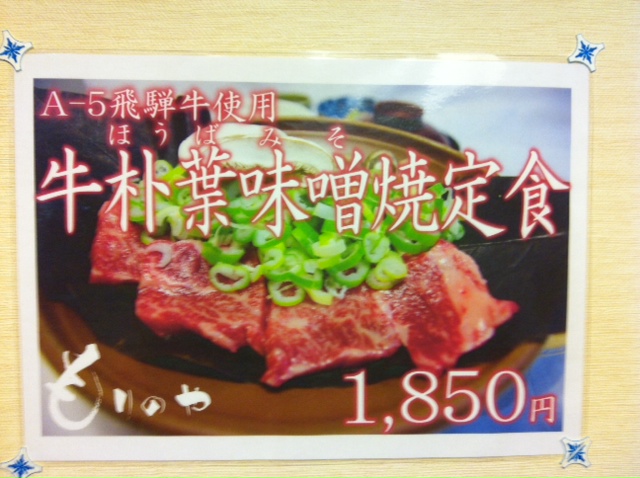 ・牛朴葉味噌定食(1850円)