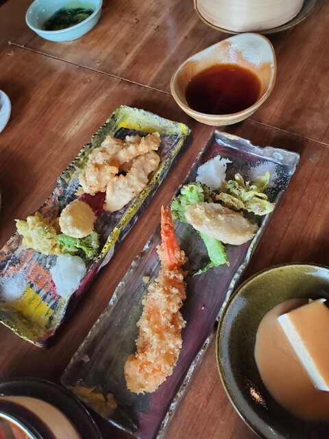 メインを選べたのですが、季節の天ぷらを注文。えびと春野菜でした。
