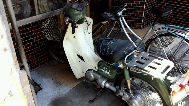 ノスタルジーな空間を抜け出すと玄関においてあるカブに気づく