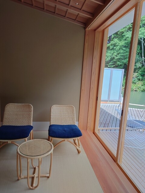 お部屋のお風呂 頭を つけて 窓を あけると 露天ふろ