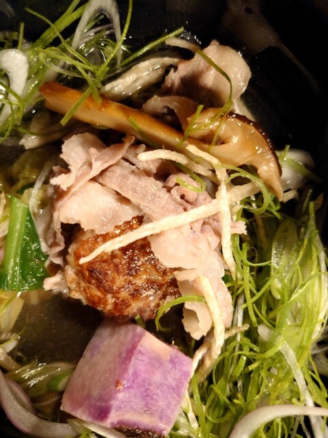 切れ味抜群の葱などの野菜をのせて