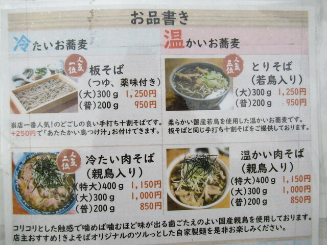 箸でそばを掴めば、そう太くは無く柔らかめかな。
