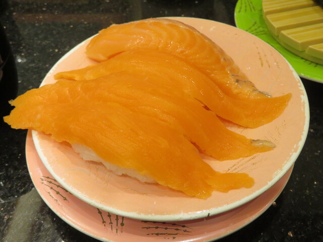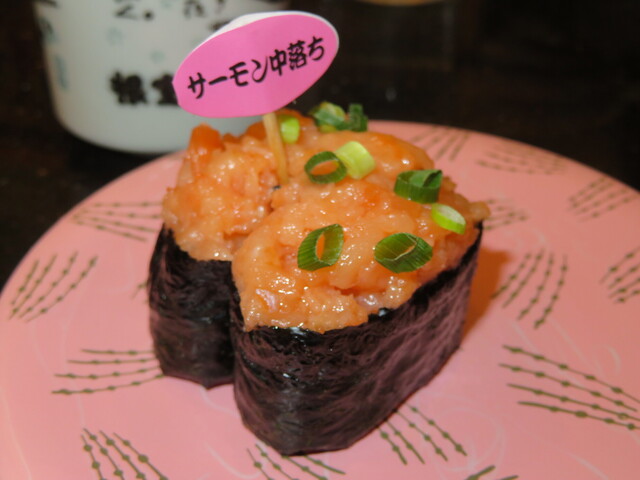 流れてきたモノでは、サーモンの中落ち、サーモン、切り落とし軍艦等をレーンから取ってみました。