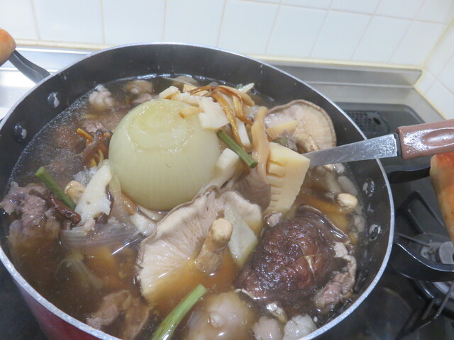 2024年も間もなく終わる。新しい年に向け、年越し蕎麦と雑煮の準備を始める。具材は、まずは鶏ガラ→名古屋「牛兵衛」の牛すじで基本を作り、竹の子、レンコン、玉葱、キノコ、山菜、ゴボウ、そして、新潟魚沼産の椎茸を→数日干した物。※今の時期ドンコを作る。生椎茸約4kg新潟産を使い。