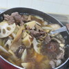 味付けは、めんつゆ2種(白、黒)ホタテ粉末、鰹節、昆布。砂糖は使わない、何故なら、黒毛和牛の筋と玉葱から甘味がでるから。完成間近に、ナメコを投入。