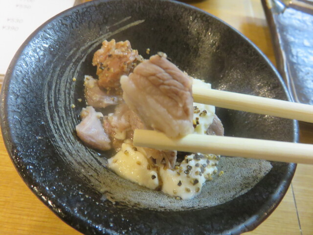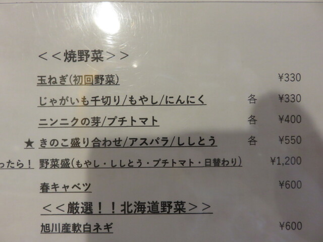 インカのめざめ 500円 →サツマイモのような色、ジャガイモ?なのだが今まで食べてきた物とは違う。塩からと、羊のソーセージの輪切り。旨いわ。芋の中に、野菜系統入れば更にベターと感じた。色々な話の中で、塩の話で、「尚ちゃん」が俺の行き着いた「塩」を持っていた。どの世界でも、塩制する物は、食材を活かすと思ってきた俺は感動した。このジャガイモを他店で使用しても同じ味は無理だろ。何故ら、塩だ。過去世界から集めた50種類の塩の中から、最後にたどり着いた「塩」をこの店は知っているからだ。塩制する物、全ての料理を制す。と俺は考えている。