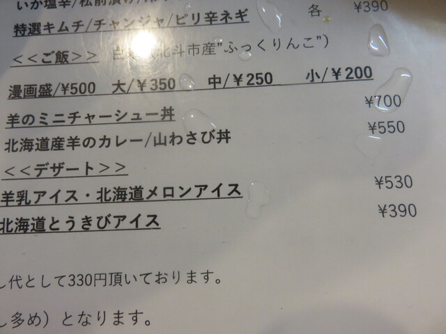 暑い中、店員達が汗をかき、必死で仕事している姿を見て、酔いが廻ってる俺は、ジュース(店長ハイボール?2杯)めんこい女性に「アイス」ご馳走したんで、値段は上がった。ジンギスカン食った後のアイス最高だべな。