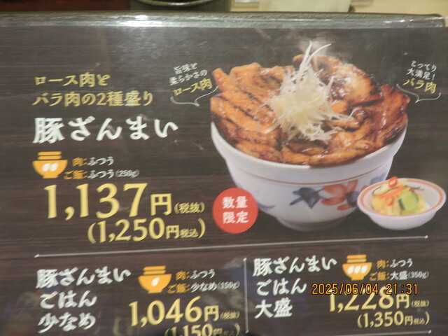 内地には、元祖帯広豚丼の看板で店を展開している事実がある。だが、事前にガスで焼かれた肉の固さ、風味等の味は最低レベル。今回は、俺の舌で、本物を食べるために、札幌駅ステラプレイス店のここを攻める。開店間近行列だ。期待感を胸に、初めての来店なので、初日は、「豚丼ご飯少なめ1050円」とトッピング「山わさび80円」クラシック生ビール600円×2杯を注文。