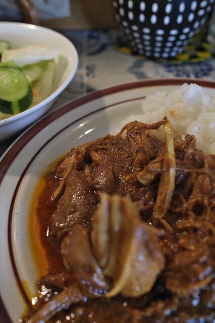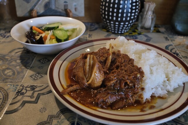 ホロホロになるまで煮た鶏肉を野菜の水分とスパイスと塩のみで味つけした絶品カレー。