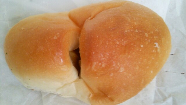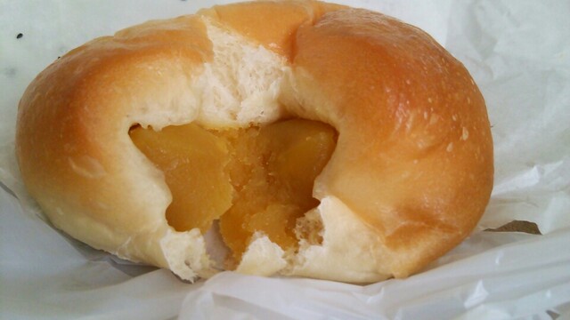 瓢箪のような妙な形だが、きつね色の光沢が見事な、美しい餡パンである。中のさつまいも餡は見るからに滑らかそうな黄金色のこし餡で、外見から想像も付かない程甘さ控えめで、芋の風味もしっかり感知出来る。旨みたっぷりの生地と上質ないも餡が組合わさったら、もう美味くない訳が無い。あっと言う間に完食してしまった。