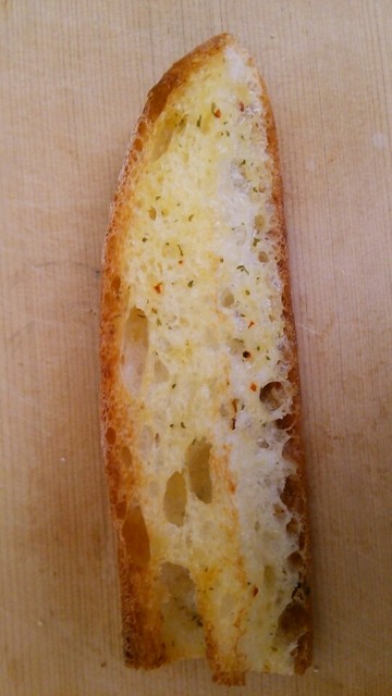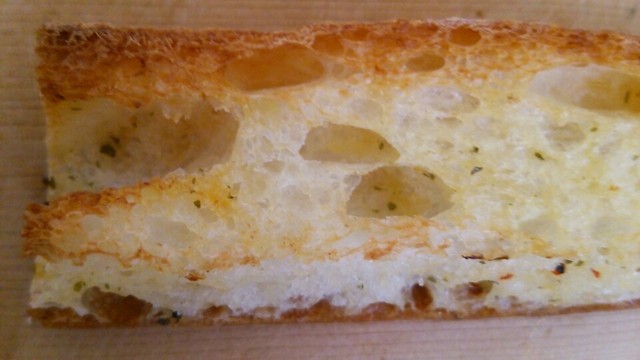 極めてシンプルなガーリックフランスだが、ラスクに近いレベルまでカリカリに焼き上げられたバケットは、もうとにかく香ばしいの一言。ガーリックバターが控えめな分、バケット生地の確かな美味さがきっちり楽しめる。価格的にも文句の付けようが無い。