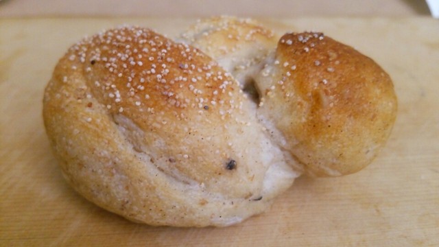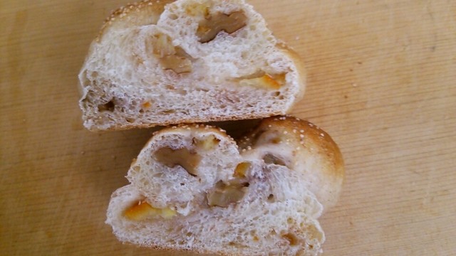 このパンにも天然酵母使用の生地が使われているが、この生地自体が絶品である。当たりはソフトだがしっかりとコシがあり、噛み切ろうとする最後の最後で歯の進入を拒むかの様な、絶妙のモチモチ感を持つ。シナモンの爽やかな香りが口一杯に広がり、林檎やレーズン、胡桃のそれぞれ異なる食感が楽しめる。全体的な甘さの加減もちょうど良い。
