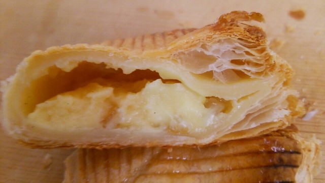 こちらのお店のパイ生地は、表面の軽やかなサクサク感と内側のもっちり感が、極めつけに素晴らしい。パイ生地によっては、内側までサクサクになり過ぎてモッサリした印象になるものも少なくない。が、ハタダさんのパイ生地は、内側のクリームに隣接する何枚かの層が実にモチモチとしている。絶妙な『焼き』の技術の為せる業だ。勿論、レモンクリームも驚くべき美味さである。レモン果汁まで使用しているから、香りだけでなく爽やかな酸味までしっかり感知出来る。恐るべき完成度だ。