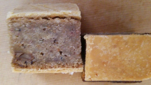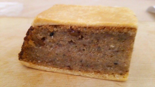 しっとりしたカステラ生地に林檎、レーズン、胡桃をふんだんに合わせ、香り付けにシナモンを加えた美味さ一杯の具材。これをサックリとした極薄のパイ生地でサンドしたのが、『ミックスサンドケーキ』である。見た目とは異なり意外なほど甘さは控えめだ。様々な食材の混じり合う複雑で奥深い味わいと、食感の対比。パンはおろか焼き菓子までとんでもなくハイレベルである。