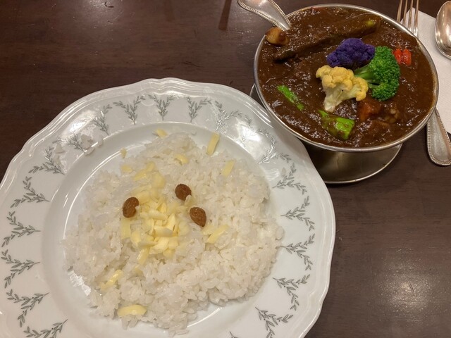 未食のビーフカレーに季節の野菜をトッピングしました。