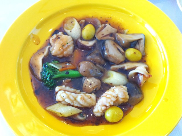 ランチコース イカと袋茸の豆豉炒め