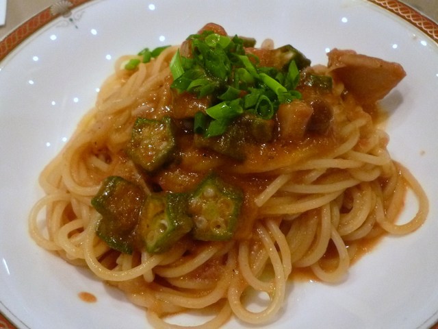 太めのパスタにあっさりとしたトマトソース。ちょっと物足りないかも。