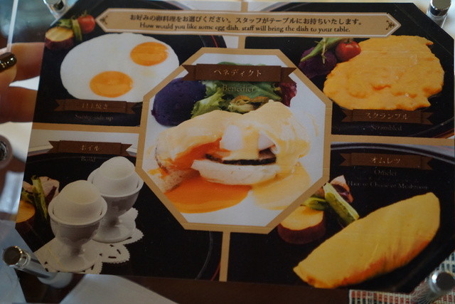 モーニングはエッグベネデイクトやオムレツ、スクランブルの等、5種から選べる卵料理と、持ってきてくれるコーヒー紅茶…。