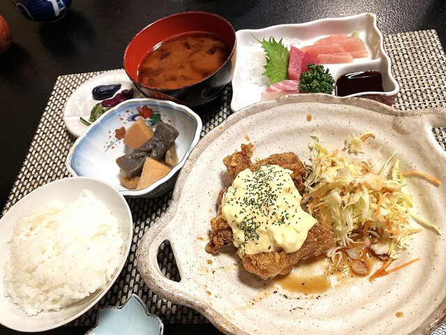 ◎1000円 唐揚げ、刺身3点盛 小鉢2品付き