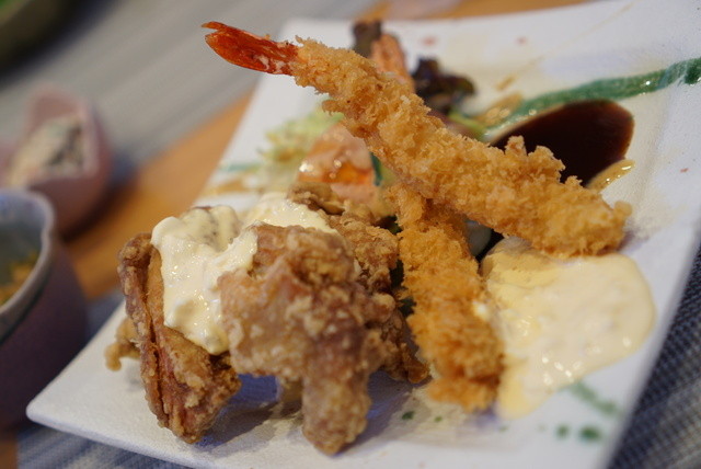 ヒレカツ、天ぷら、エビフライ、チキン南蛮、焼き魚をチョイスすると+150円。