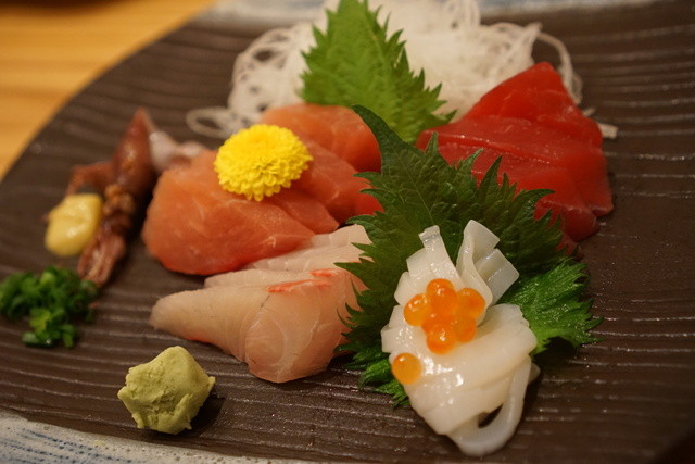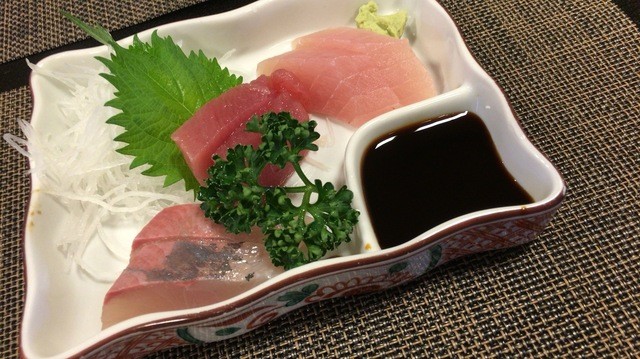 お造り3種は分厚くて嬉しいな♡と坊や。