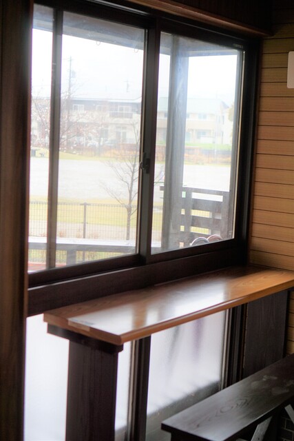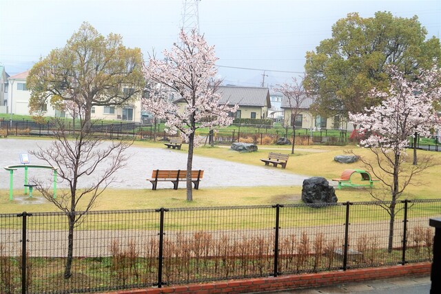 店内から公園が一望