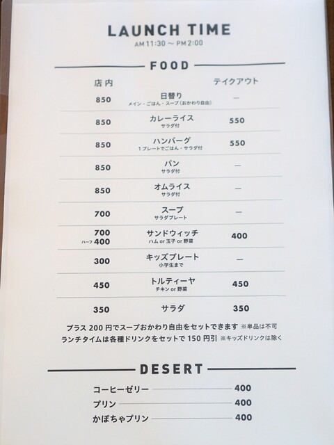 モーニングはドリンク代のみ