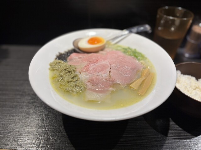 看板メニューの「牡蠣ラーメン」(1,100円)は、スープをひと口すすると牡蠣の凝縮されたエキスが口いっぱいに広がり、海の旨みがガツンと来る。あっさり系かと思いきや、コク深く、貝の風味をここまで丁寧に引き出したスープには感動すら覚えました。しなやかな中細麺もスープとの相性抜群で、一体感のある完成度の高さ。