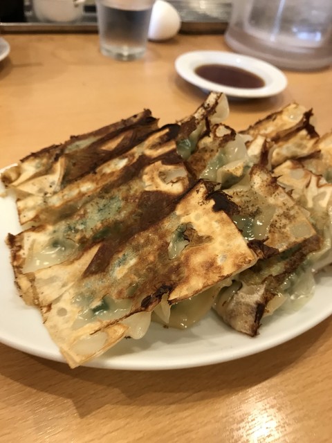 餃子は長方形の平べったい形でパリパリ〜〜!旨〜〜