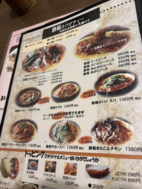メニューを見ると。。見たことない名前のスパゲッティが色々と。。