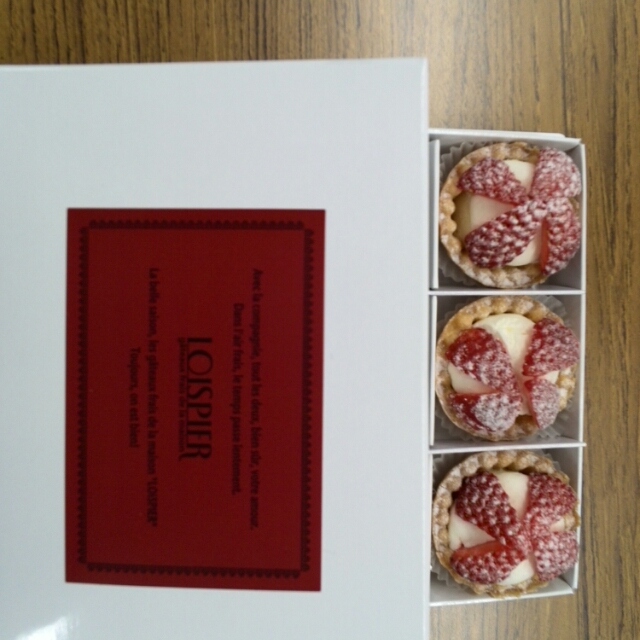現在学びの身であるあたいφ(`д´)カキカキ高身長の甘いマスクをまとったイケメン営業所長から、エールの差し入れ♪イチゴが乗った小ぶりのタルト♡♡♡♡♡♡これは女子の好みを統計的に把握されていらっしゃる御方でなければ差し入れできない逸品(@ ̄ρ ̄@)小ぶりな1つ1つが、少しずつをたくさん食べたい女子の心にDQN(。・ ω<)ゞてへぺろ♡甘酸っぱーいイチゴと、上品な甘さのカスタードクリームにケーキっぽいタルト(*´ω`*)どのようなお店なのか、近々偵察に行ってみるとしようズベッ(ノ_ _)ノあっ早速転んだ…この雪ですものね~…(;´д`)トホホ…