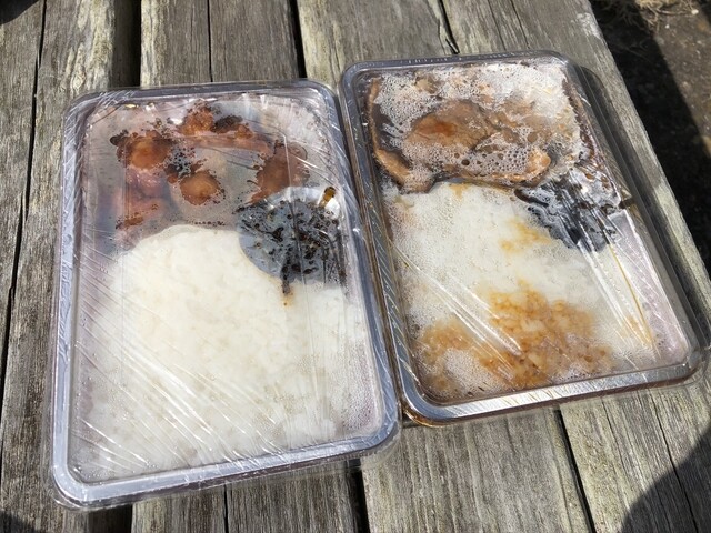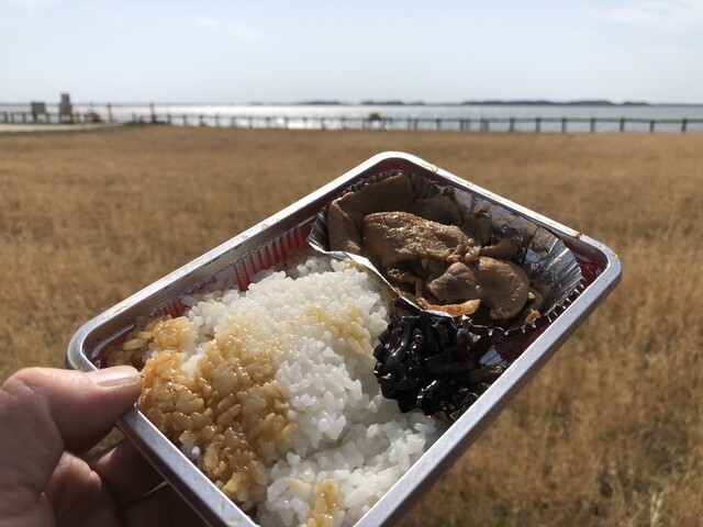 バイクで湖沿いの公園まで行き、景色を眺めながらいただきました。シンプルなおかずとご飯ですが、タレのしみ具合とご飯の美味しさが相まって最高!焼肉と唐揚げを食べ比べて、自分は唐揚げ派。唐揚げにも美味しいタレが絡めてあってこれがまたご飯と合う!!
