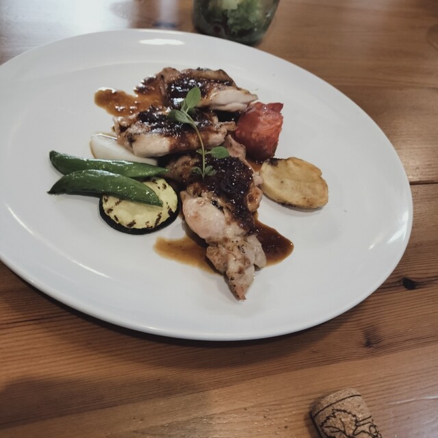 サラダの提供後にメインの料理が到着肉料理は、ジューシーなチキンが酸味のあるソースにマッチしています。