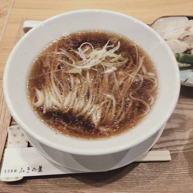 1,000円以内とは思えない豪華な1杯麺が、あざみと同様に特徴的な喉ごしを感じる中太の平打ちのピロピロ麺。スープは、すっきりとした醤油味でくせもなく飲みやすい味わい。