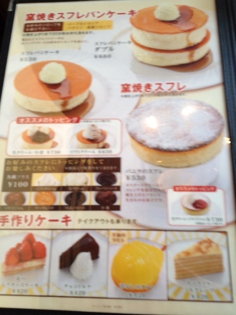 3時を過ぎた頃、小腹が空いたのでたまたま通りかかったお店の看板を見ると「釜焼きスフレパンケーキ」の文字が。