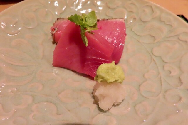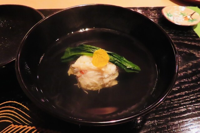 先付けは5品それぞれ別のお皿に小ぢんまりと盛られたもの。最初からキャビアあり、ウニあり、松茸ありで期待大。フグの白子をソースにしたもの、歯応えがしっかり。マグロは海苔巻きに、ねっとりした旨みが広がる。ビール2杯の後日本酒へ。割と有名どころが並んでいる。名前だけでこれは純米なのか?と訝っていたら女将さんがこちらは純米大吟醸最初に向いてる、などと一通り説明してくれました。醴泉、松の司、九平次、春鹿などをいただきました。後半カニの椀ものや海老の焼いたの(相方感動)、焼き物はぐじ、きんき、太刀魚、牛タン、和牛から2品セレクト。私はキンキと和牛にしましたが、火入れが絶妙で美味でした。相方の牛タンも柔らか。ごはんは柔らかめでしたがその分優しく感じました。