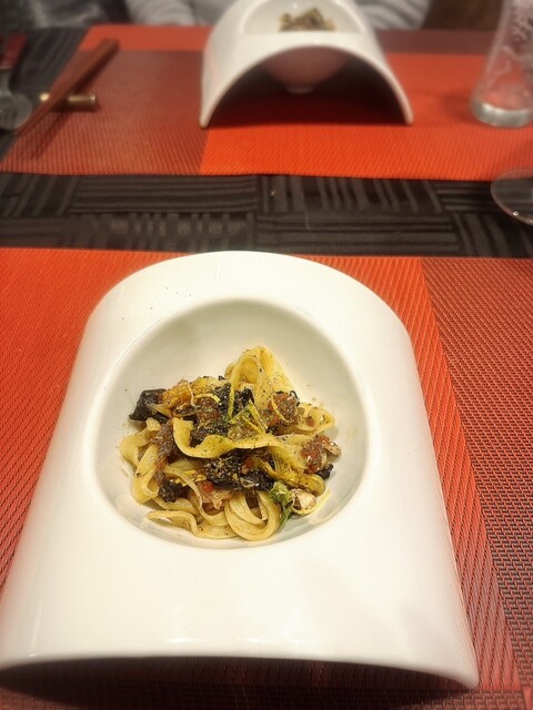 パスタは生パスタを使用していてもっちり食感カニの風味も良く絡んでました。