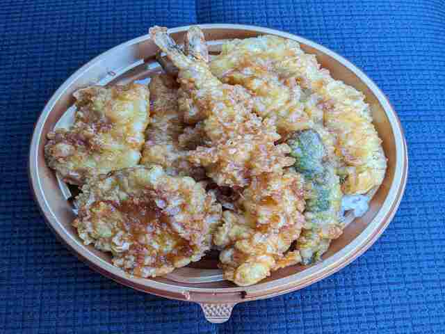 美味しいエビ・穴子・半熟玉子付天丼が、低価格で大満足なランチ