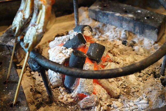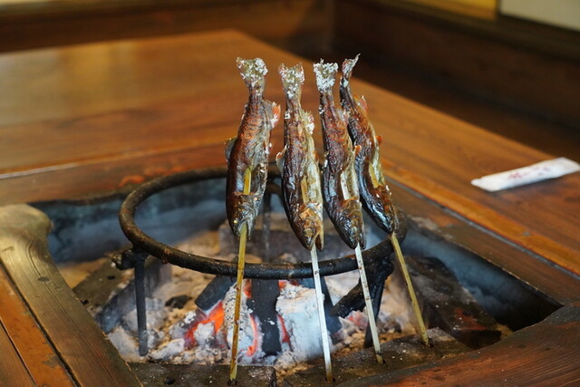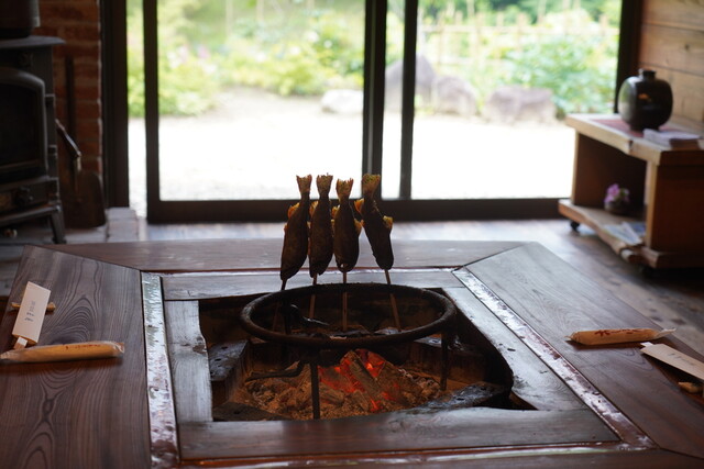 囲炉裏で、「あまご」を焼くのを見ながら次は