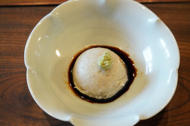 少し待って、「蕎麦掻」・・・熟成されたたまりをつけて・・・もっちりした食感。