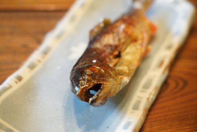 ☆「あまご」・・・囲炉裏で1時間以上かけて丁寧に焼いたあまご。臭みが無く食べ易い。
