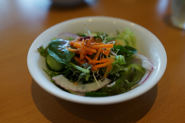 水菜とか人参、そして爽やかな甘みの紫玉葱、程よい苦味のルッコラがアクセント。